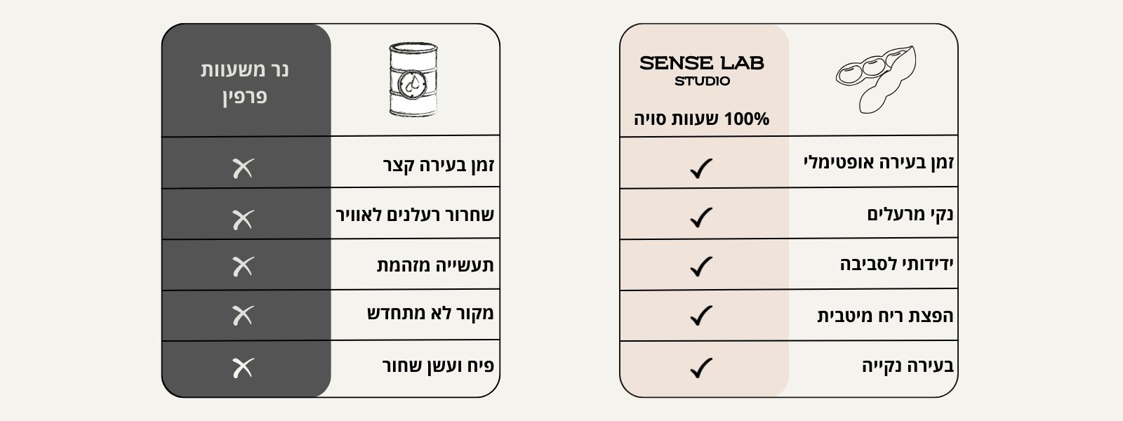 יש לכבות את הנר שגובה השעווה מגיע ל- 1 ס"מ