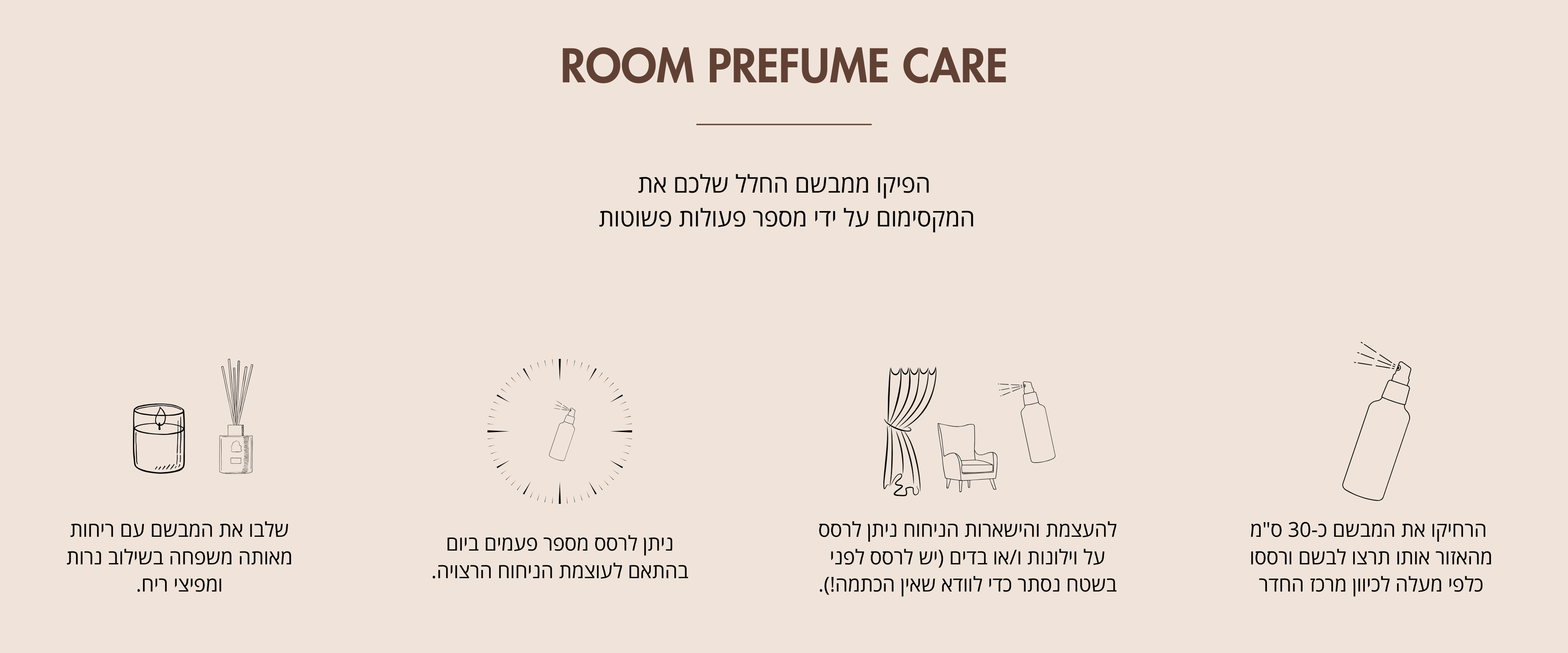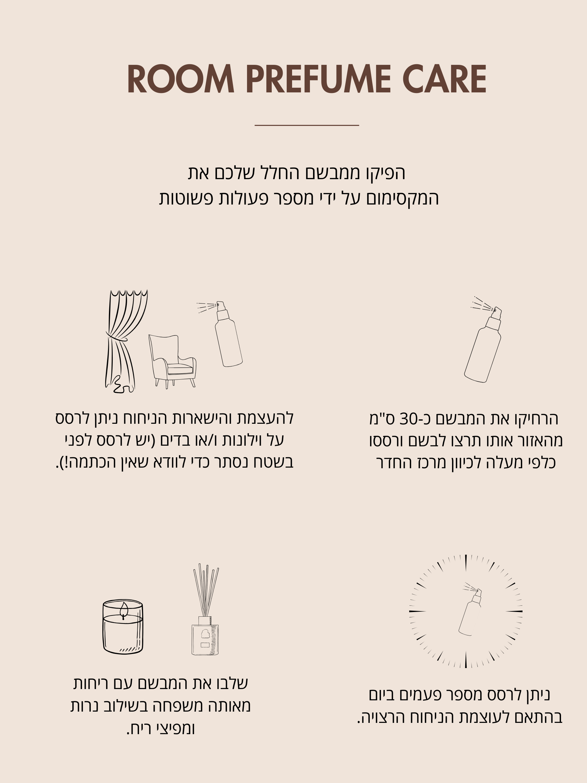 3. ניתן לרסס מספר פעמים ביום בהתאם לרמת הניחוח הרצויה.