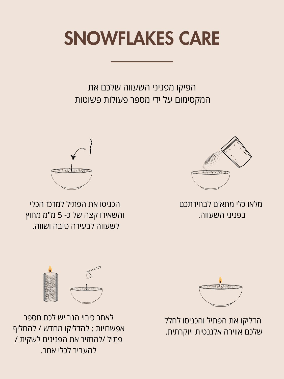 • ידידותי לסביבה: שעווה טבעית ופתילים מכותנה אקולוגית.